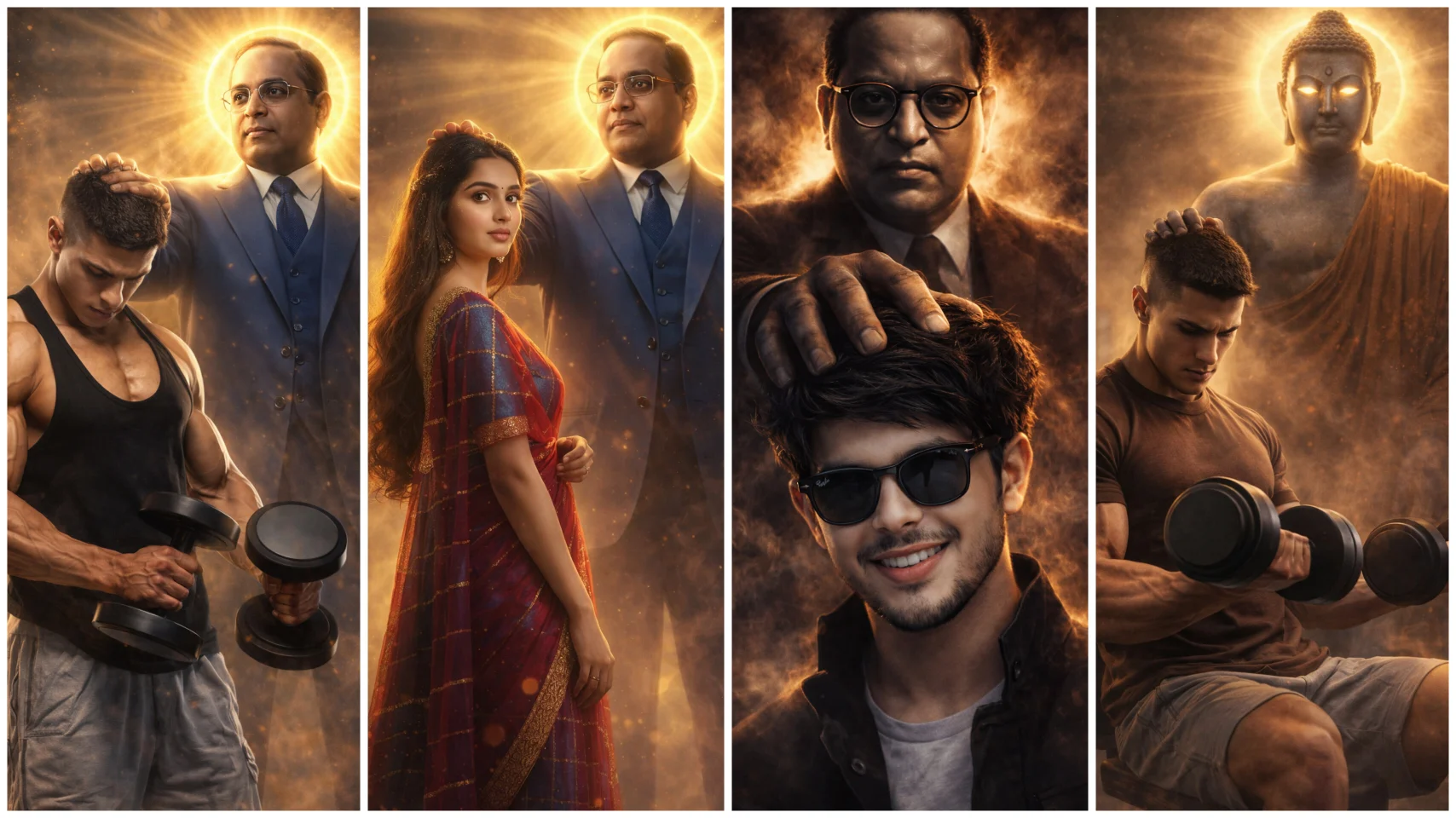 Friends, you might have seen the formal attire of Bhim Rao Ambedkar which consists of blue suit, tie and glasses. And we are going to create a similar photo. For example – you are standing and Baba Saheb Bhim Rao Ambedkar ji is in the sky who will be seen blessing you. In some photo you have taken the Constitution of India and Baba Saheb and have made photos of different styles which are absolutely realistic, respectable and cinematic. Which people will like very much.