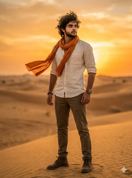 ULTRA REALISTIC CINEMATIC PORTRAIT — DESERT SCENE (FACE LOCK MANDATORY)