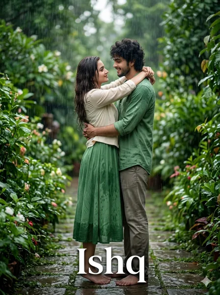 TEXT: Add stylish cinematic text “Ishq” at bottom center.
